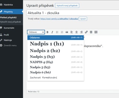 Vytváření příspěvku (aktuality) (nadpis h3)